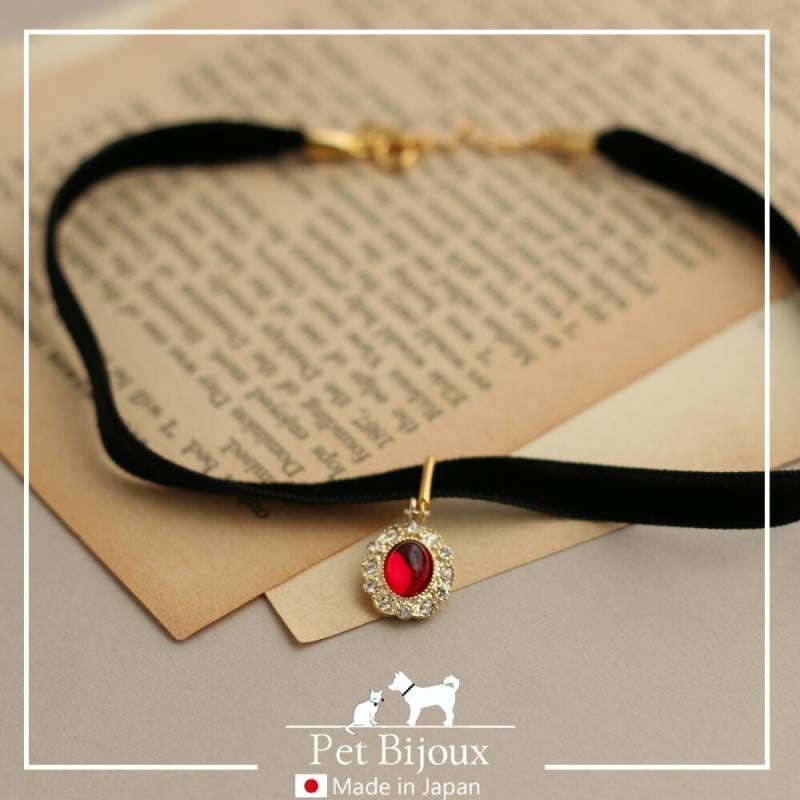 送料無料 日本製 ペット用ドッグアクセサリー ベロアビジューネックレス