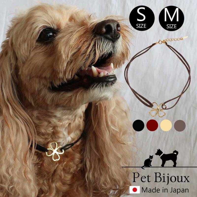 ペットアクセサリー クローバー首輪 スエード チョーカー 犬 猫