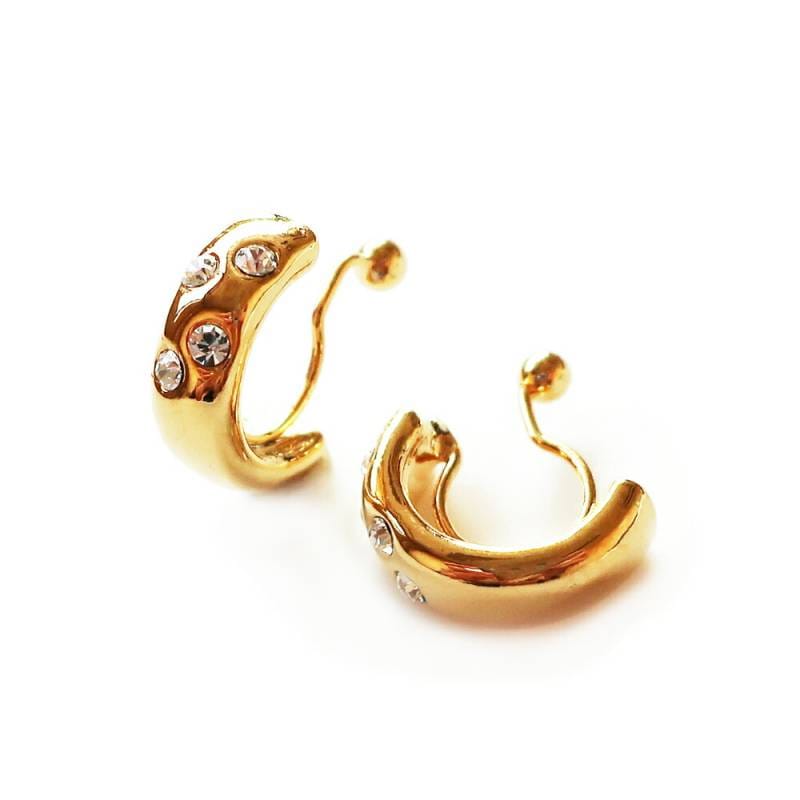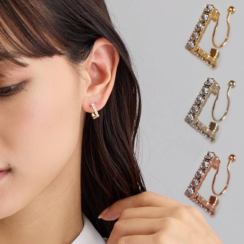 ピアスみたいなイヤリング 日本製 小ぶりストーン フープ ノンホールピアス 金属アレルギー対応