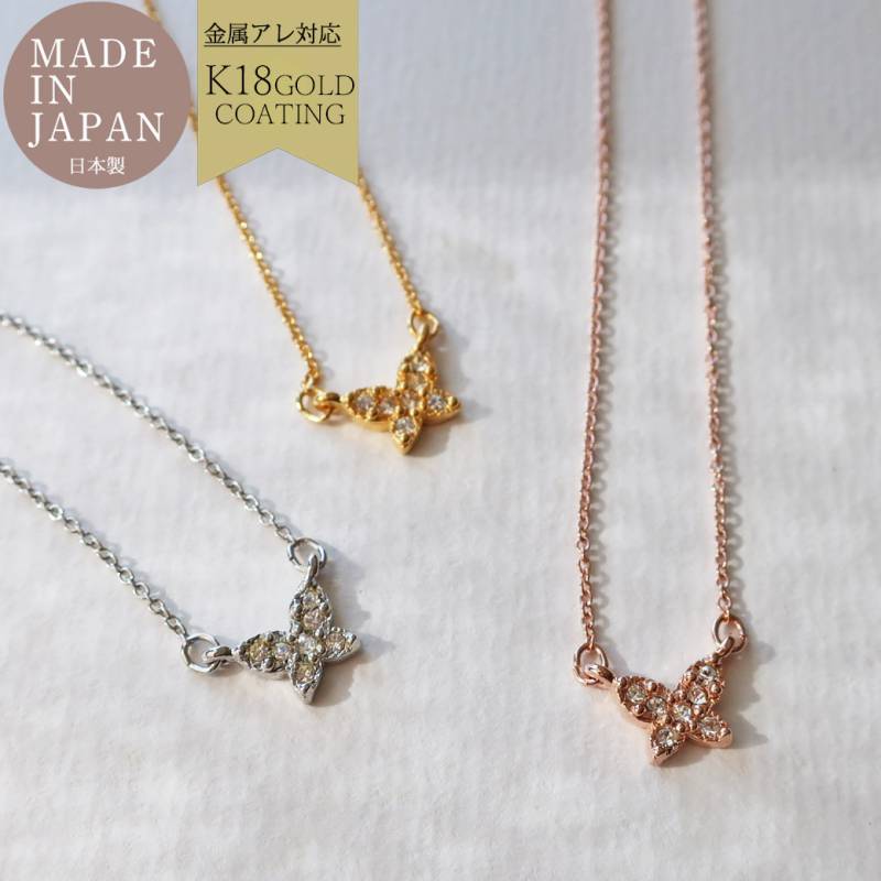 日本製 純国産 バタフライ ネックレス K18コーティング 金属アレルギー対応 送料無料