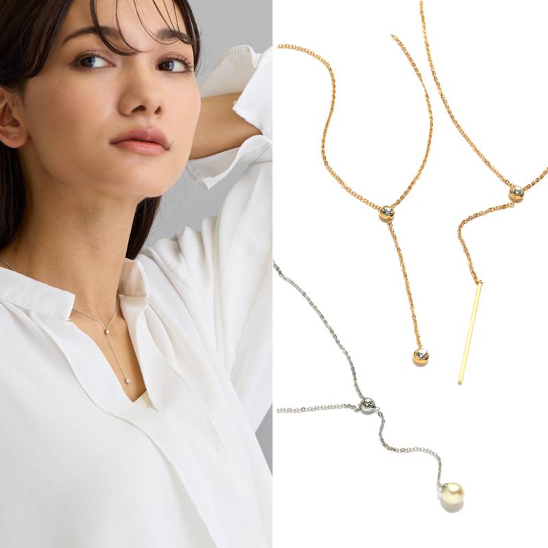 送料無料 日本製 胸元をすっきりと魅せる選べるモチーフのラリエットネックレス