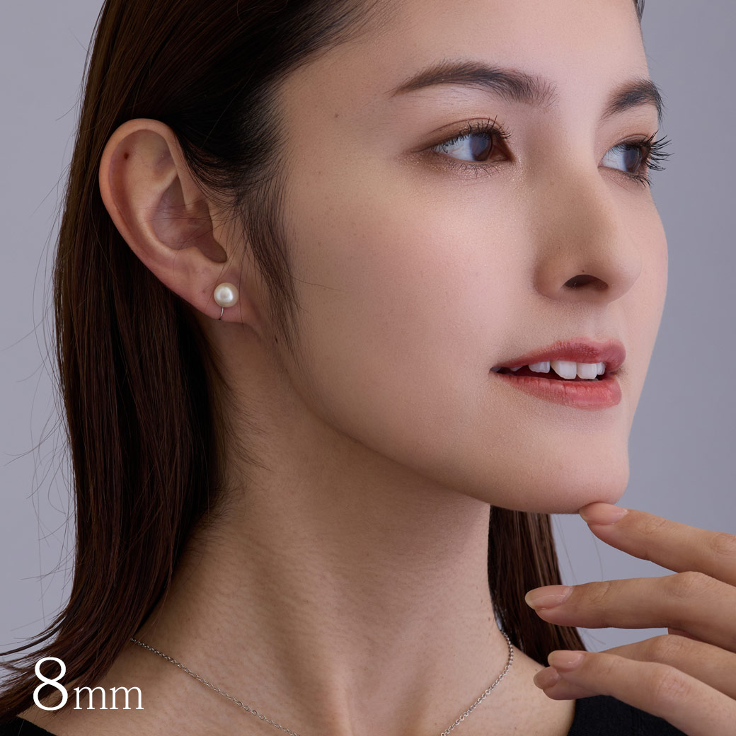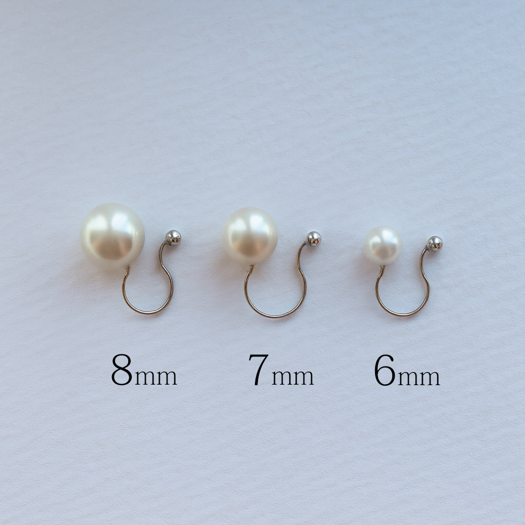 耳に穴がなくても楽しめる一粒パールのノンホールイヤリング。まるでピアスのような上品な見た目で、6mm・7mm・8mmの3サイズから選べる日本製アクセサリーです。