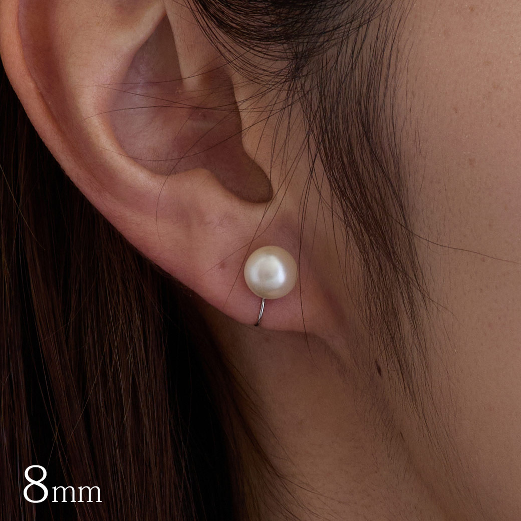 耳に穴がなくても楽しめる一粒パールのノンホールイヤリング。まるでピアスのような上品な見た目、8mmサイズの
