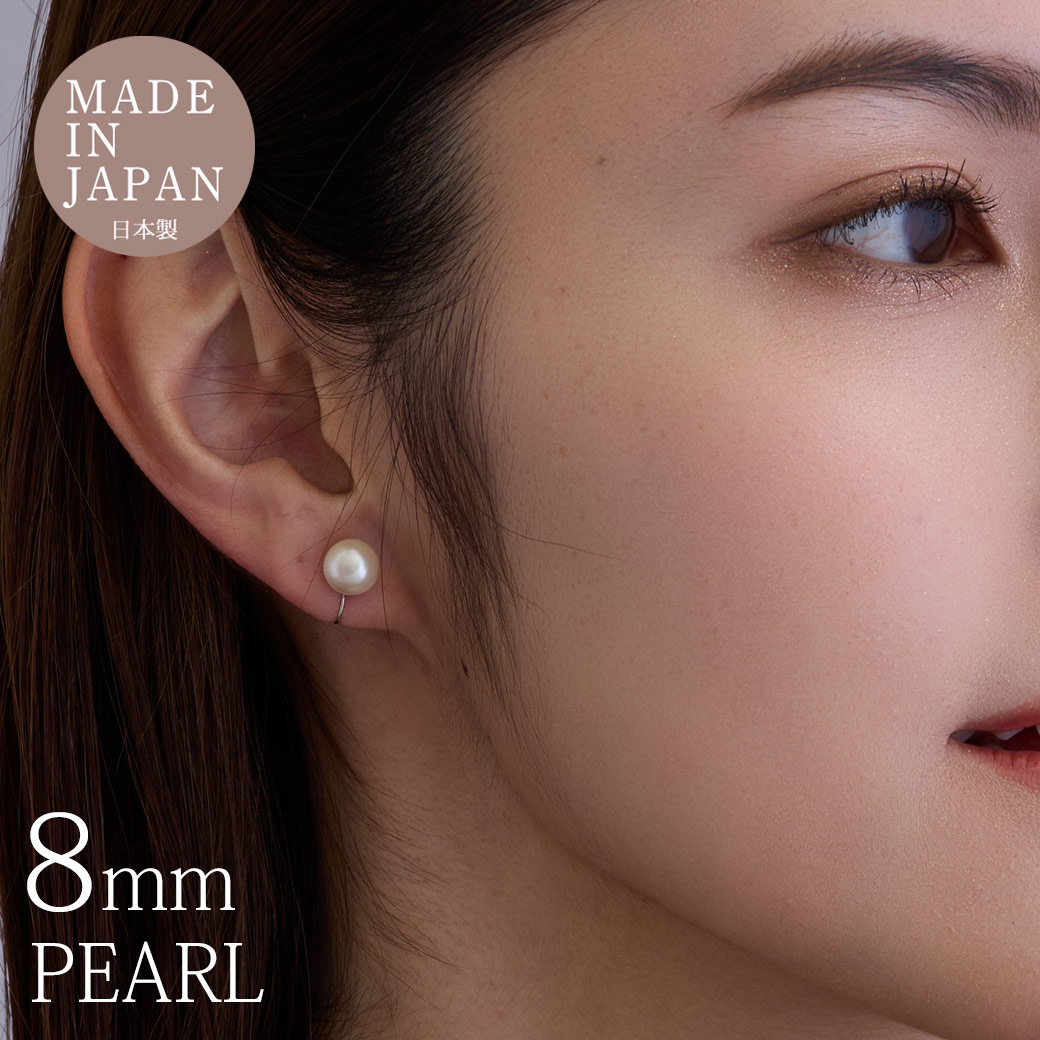 日本製 純国産 ピアスみたいなイヤリング パール ノンホールピアス 8mm 送料無料