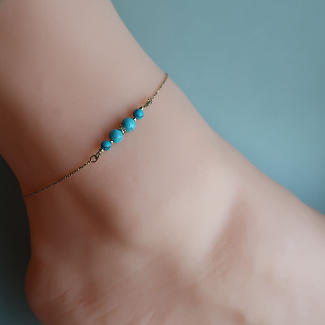 足元にそっと寄り添う、繊細なチェーンと涼しげなターコイズビーズ。