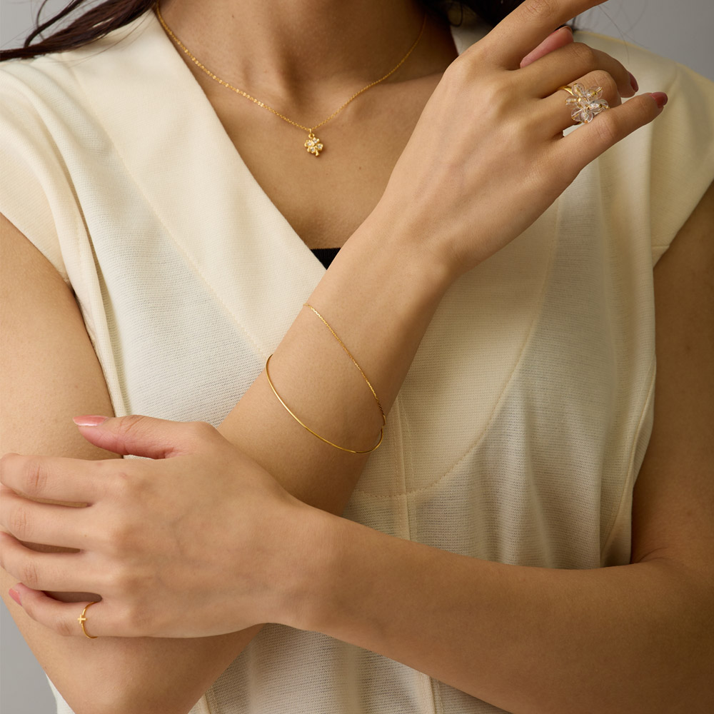 シンプルデザインは合わせやすく、いつものファッションにプラスして、女性らしい雰囲気の手元に。
