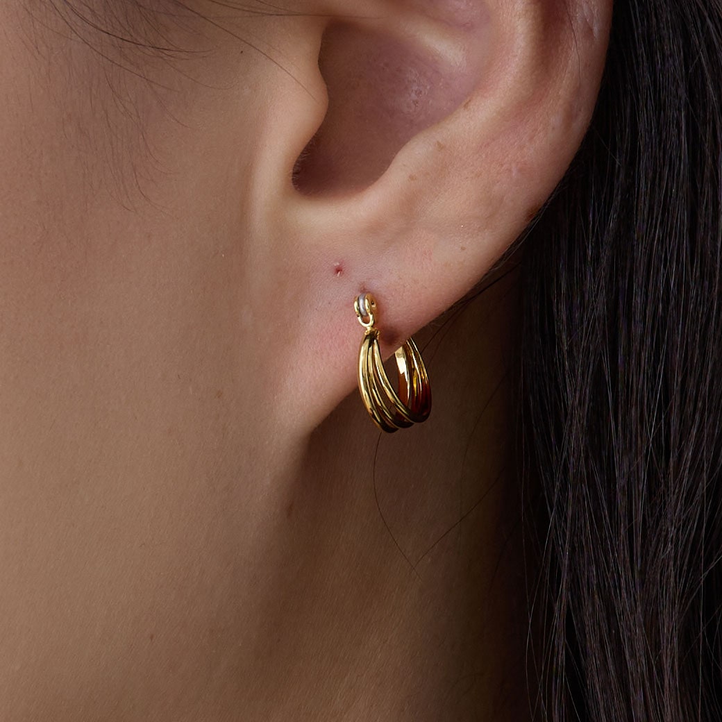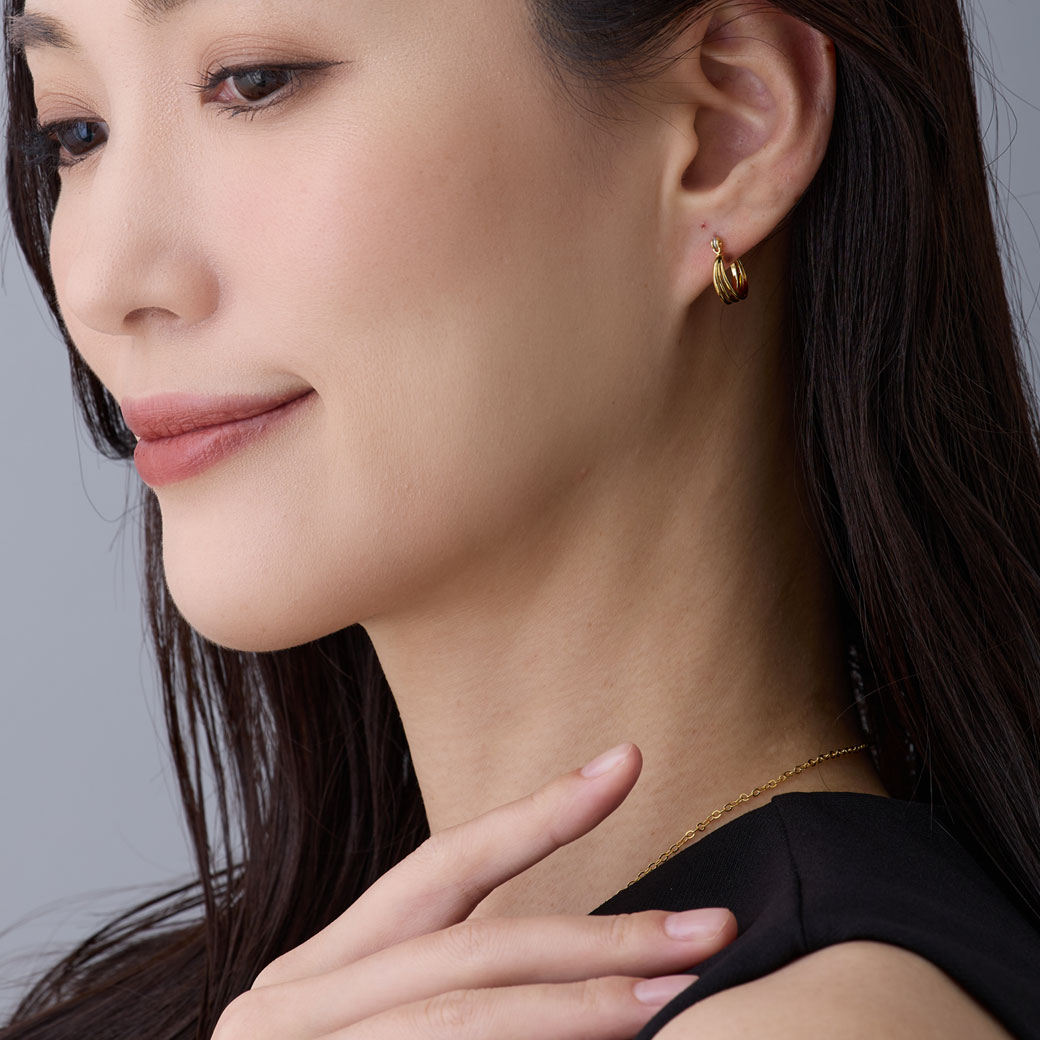 【やさしさと洗練が重なる、三重ラインのフープピアス】