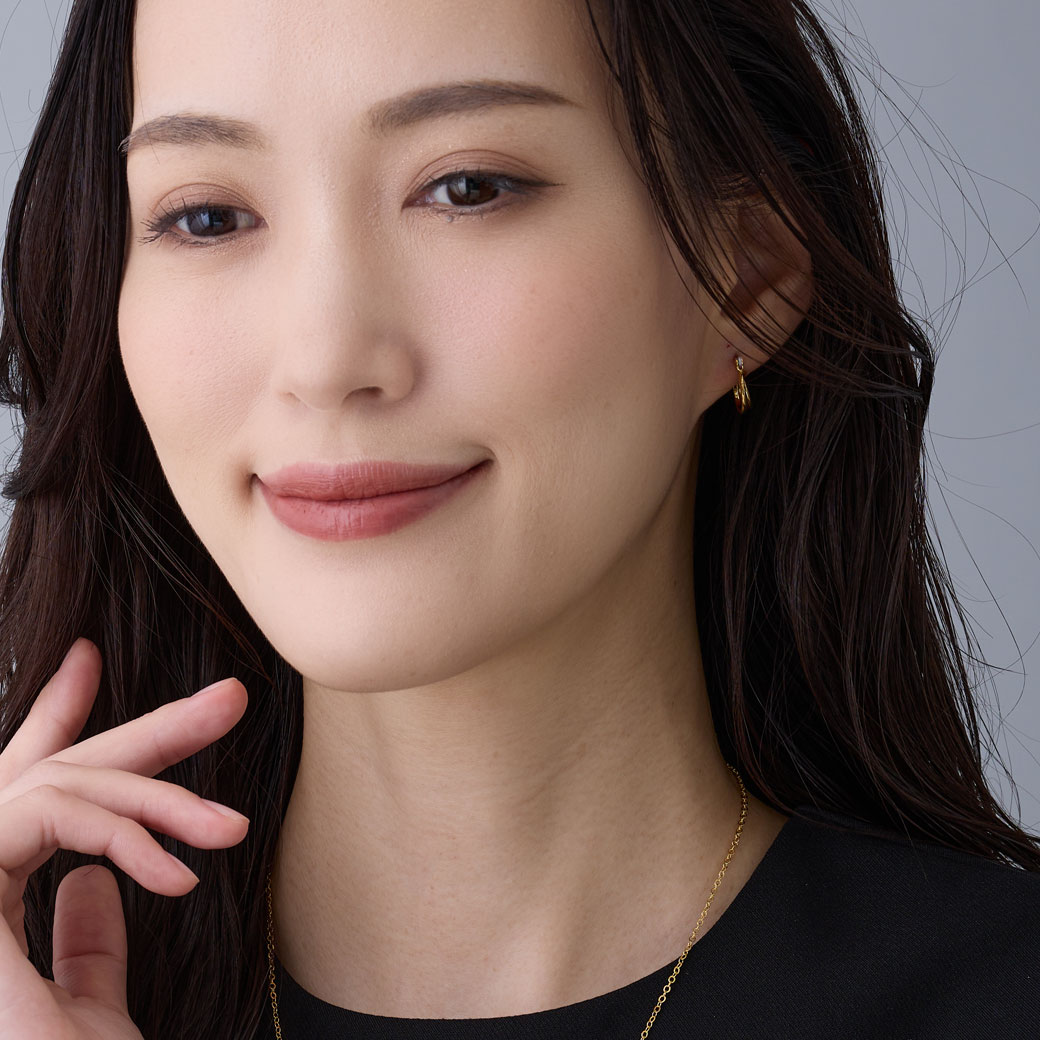 立体感のあるデザインは、横顔に上品なニュアンスを添え、日常にも特別なシーンにも寄り添います。