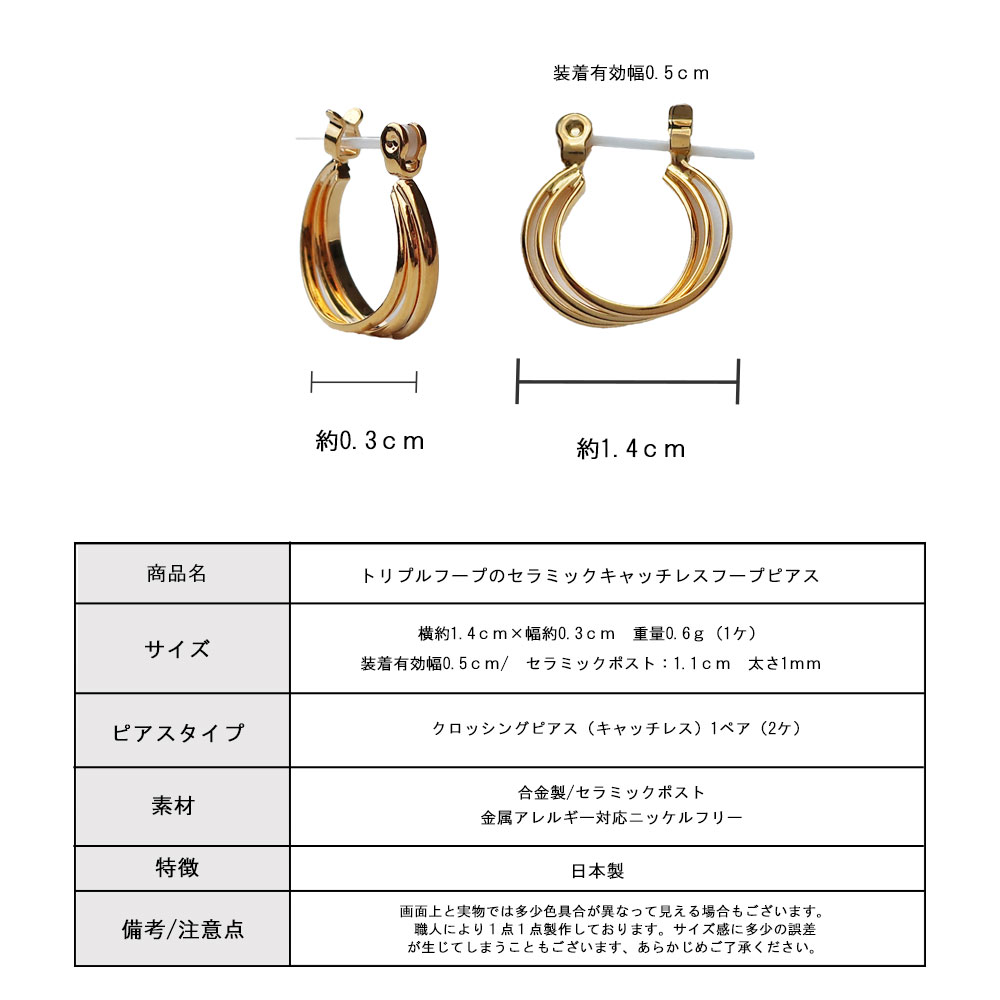 ■商品名:トリプルフープのセラミックキャッチレスフープピアス(2F)