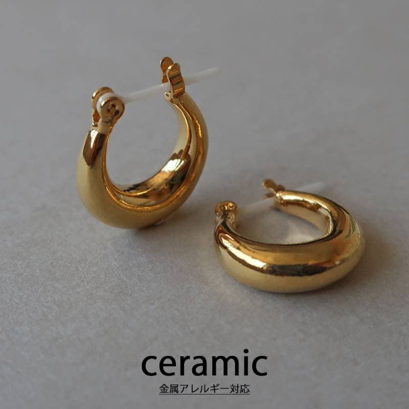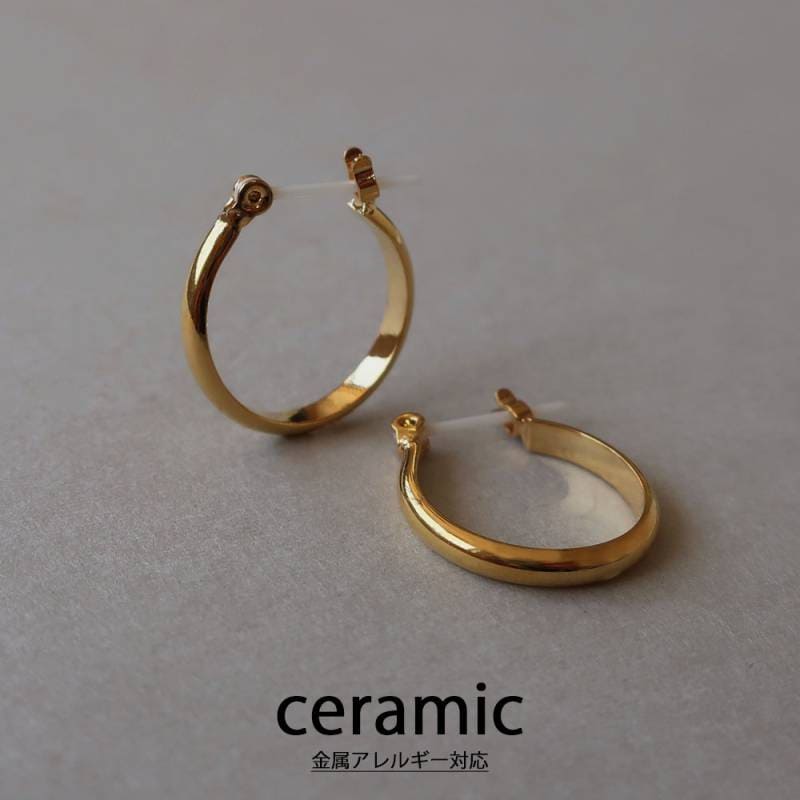 日本製 セラミック ピアス 金属アレルギー対応ピアス 小ぶり 反り フープピアス K18GP