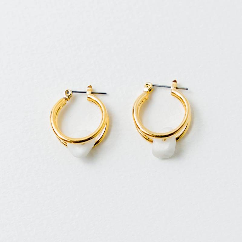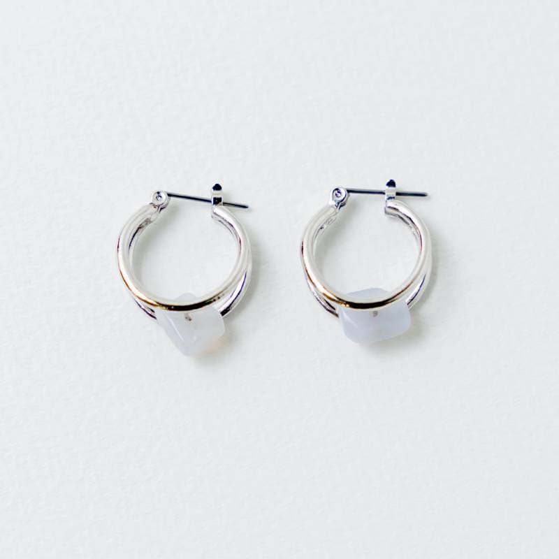 日本製 Cross line jewel hoop earrings